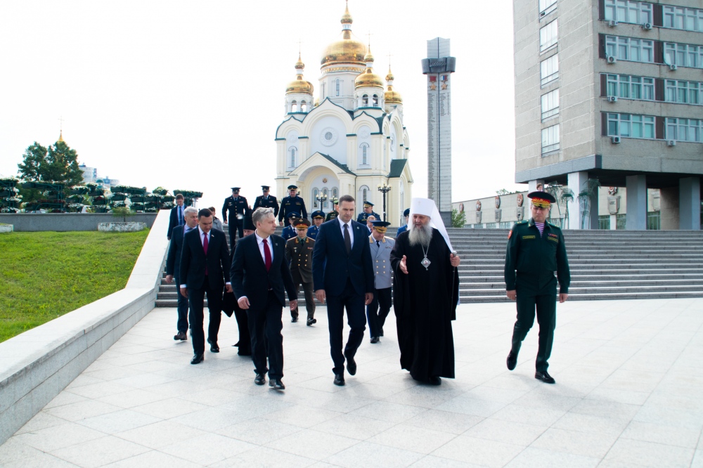 Мемориальные торжества в день начала Великой Отечественной войны начались с литии в Спасо-Преображенском кафедральном соборе. Заупокойное богослужение возглавил митрополит Хабаровский и Приамурский Артемий. Также за богослужением молились: врио губернатора Хабаровского края Дмитрий Демешин, первые лица города и края, жители краевого центра.