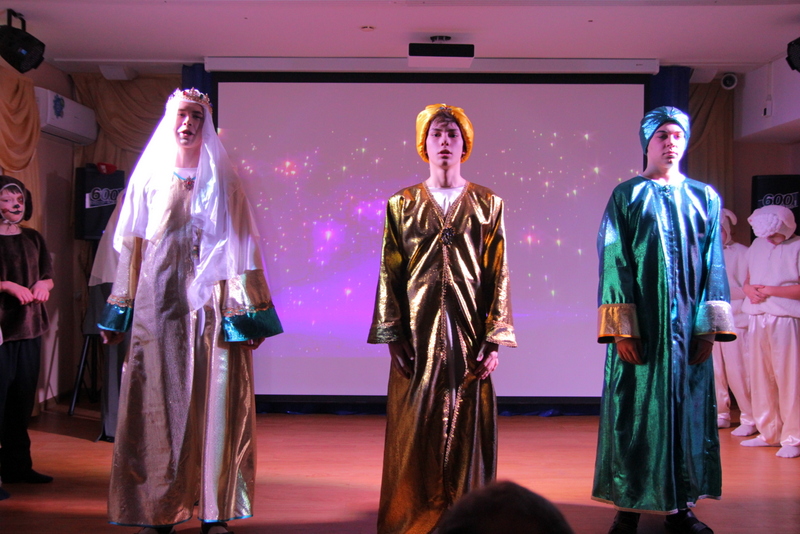 После молитвы в актовом зале воспитанники центра показали творческие номера. Ребята старательно пели песни, рассказывали стихи, выступали в постановках, педагоги поддерживали их, где-то подсказывая и помогая.