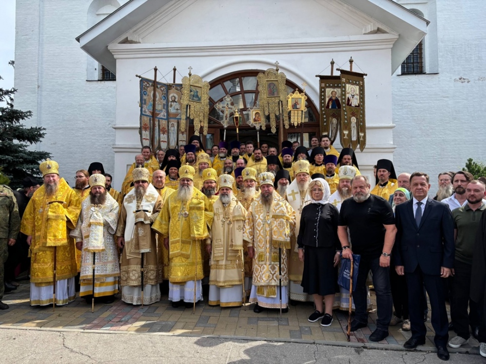 По окончании богослужения был совершен Крестный ход по территории обители, который увенчался молебном у западных врат Никольского храма.