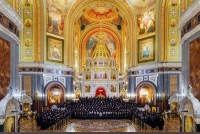 За Литургией молились участники собрания, проследовавшие по окончании богослужения в Зал церковных соборов.