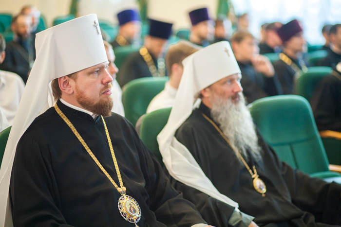 В своем приветственном слове владыка Владимир, поприветствовав на собрании владыку Марка, поздравил всех учащихся и учащих, особо отметив высокое предназначение священнического служения.