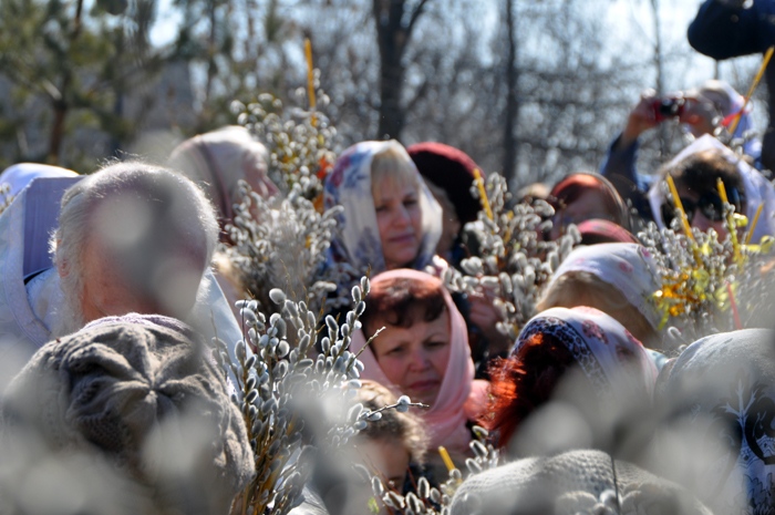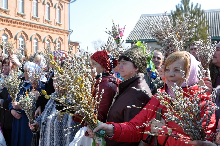 Вербное воскресенье на месте сгоревшего храма св. благоверного князя Александра Невского в Хабаровске. 13 апреля 2014 г.