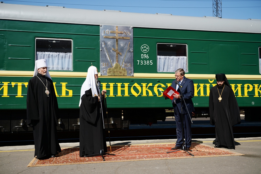 Патриарший визит в Приамурскую митрополию. Посещение миссионерского поезда «Святитель Иннокентий Иркутский». 16 сентября 2014 г.