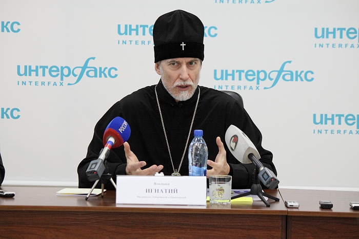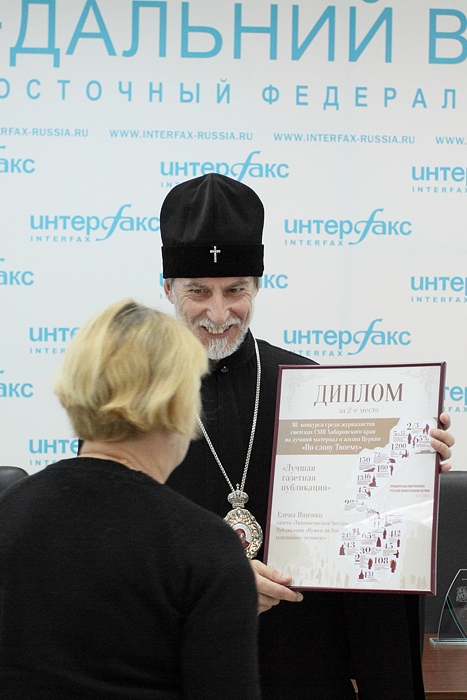 Итоговая пресс-конференция митрополита Хабаровского и Приамурского Игнатия и награждение журналистов - победителей III конкурса на лучшую публикацию о Церкви "По слову Твоему". 15 декабря 2014 г.