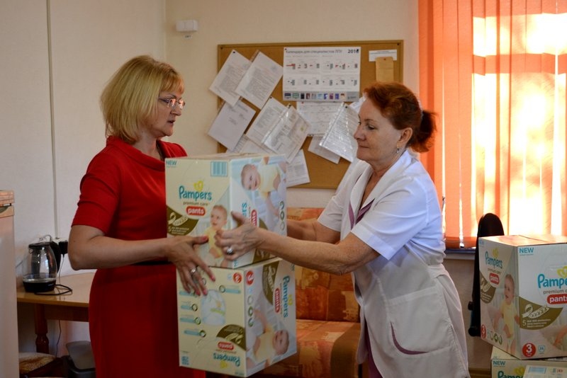 Представители Отдела по Церковной благотворительности и социальному служению Хабаровской епархии передали 5000 подгузников руководству Специализированного дома ребенка №2. 2 октября 2016 года