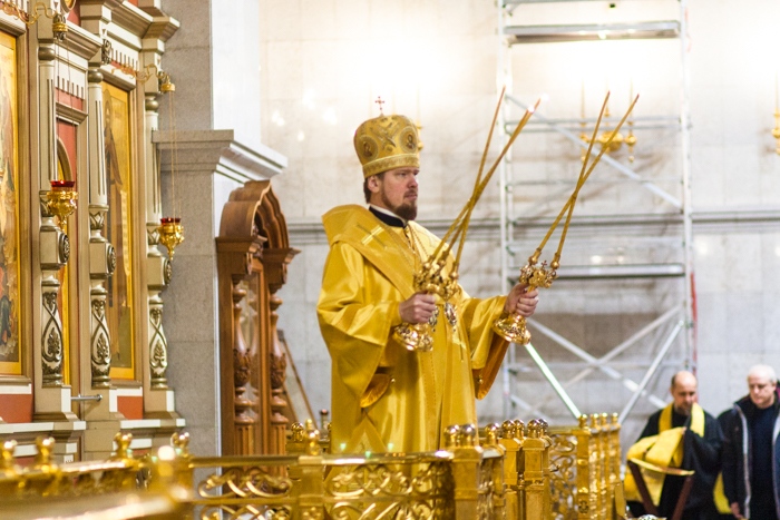 Всенощное бдение накануне дня памяти святителя Спиридона Тримифунтского в Спасо-Преображенском соборе 24 декабря 2016 г.