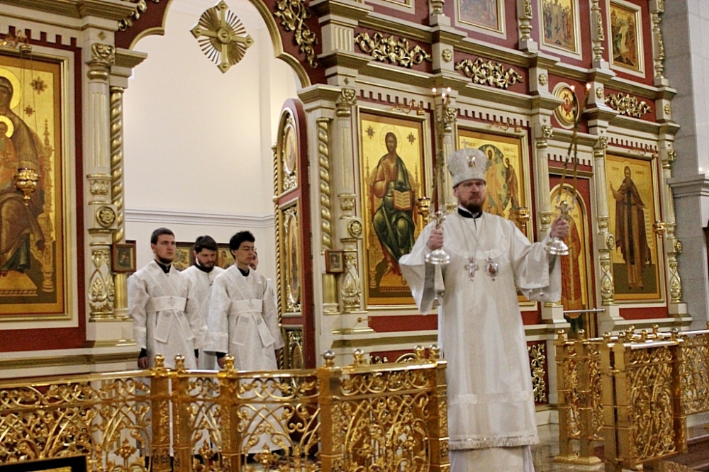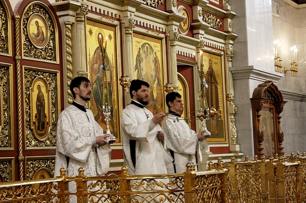 Божественная литургия на Лазареву субботу в Спасо-Преображенском кафедральном соборе 08 апреля 2017 г.