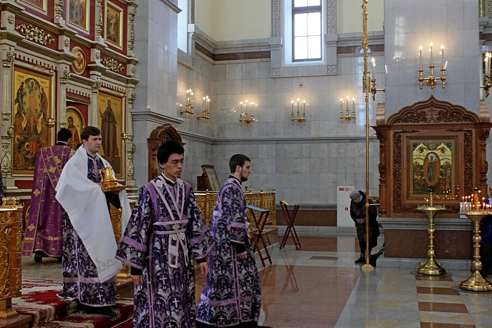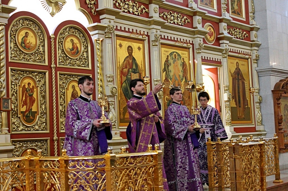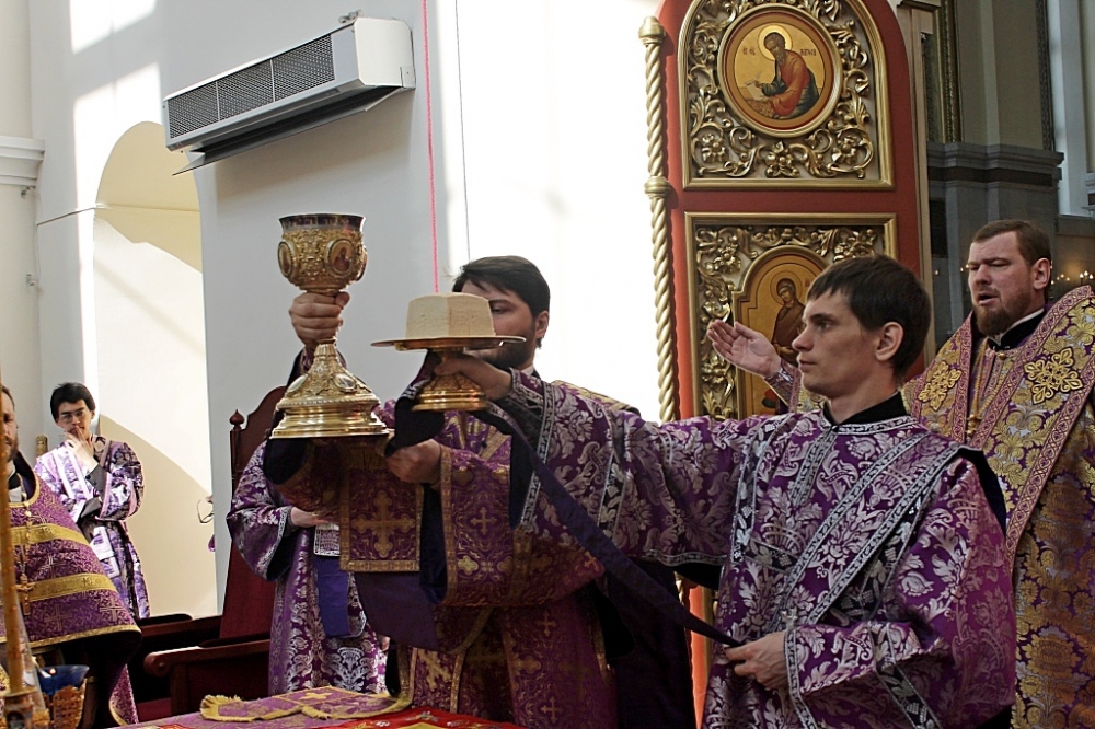 Божественная литургия в Великий четверг в Спасо-Преображенском соборе 13 апреля 2017 г.