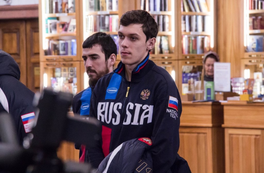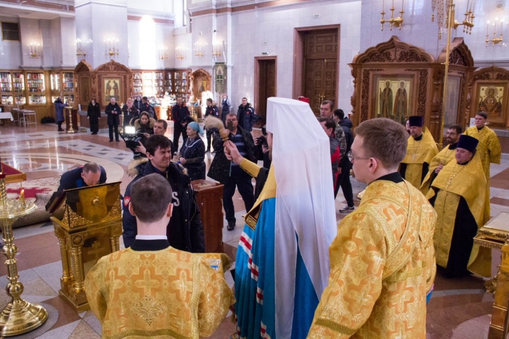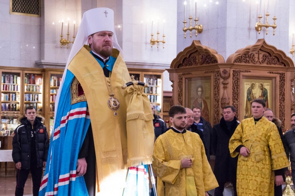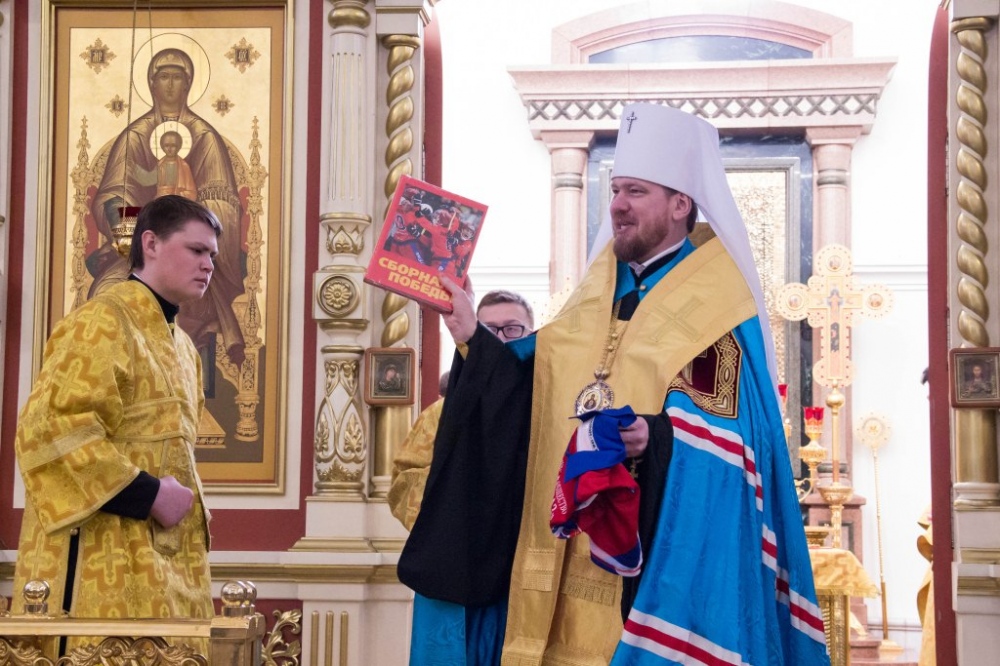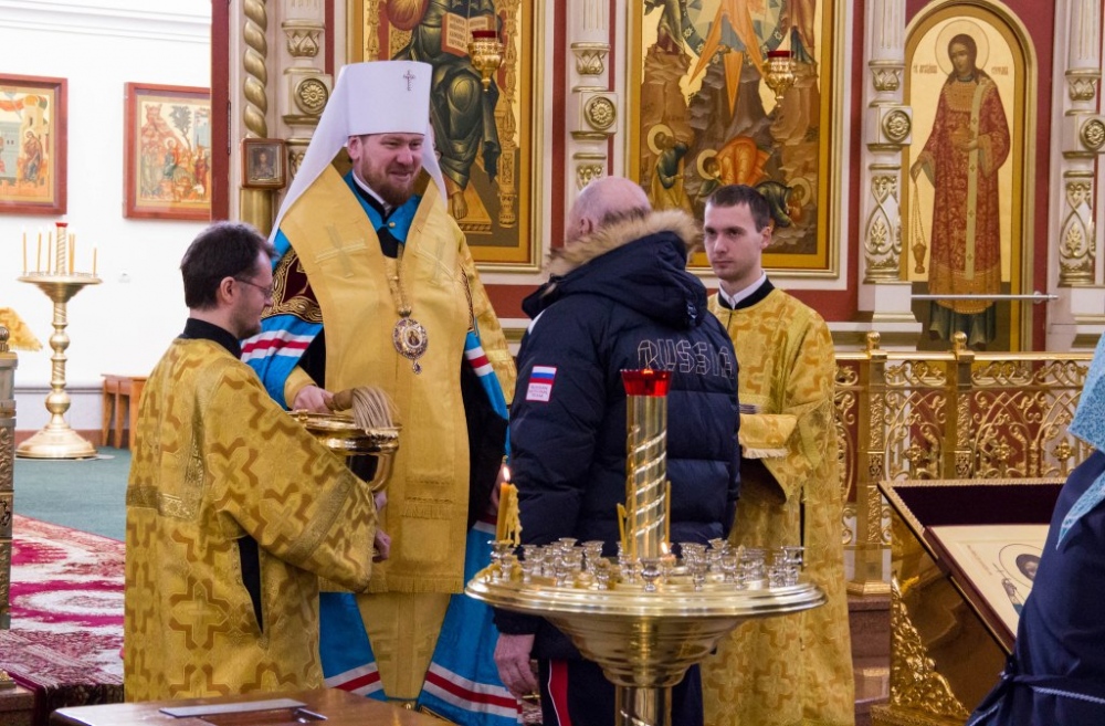 Члены сборной России по хоккею с мячом помолились в главном храме Хабаровска перед чемпионатом мира 29 января 2018 г.