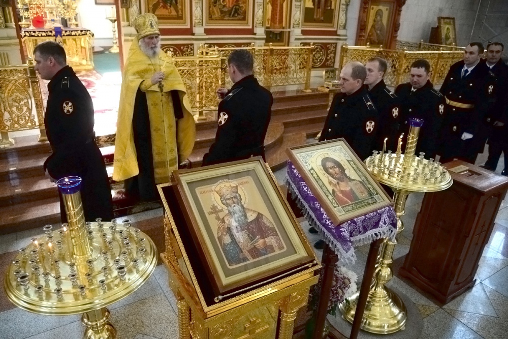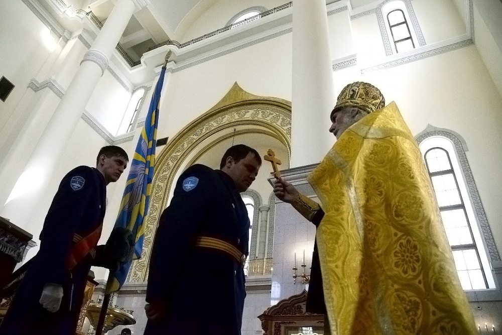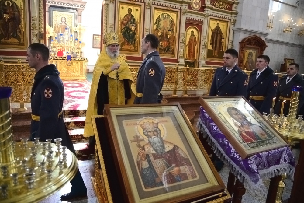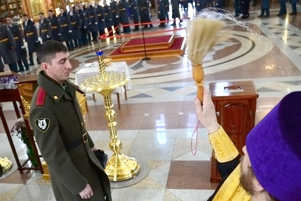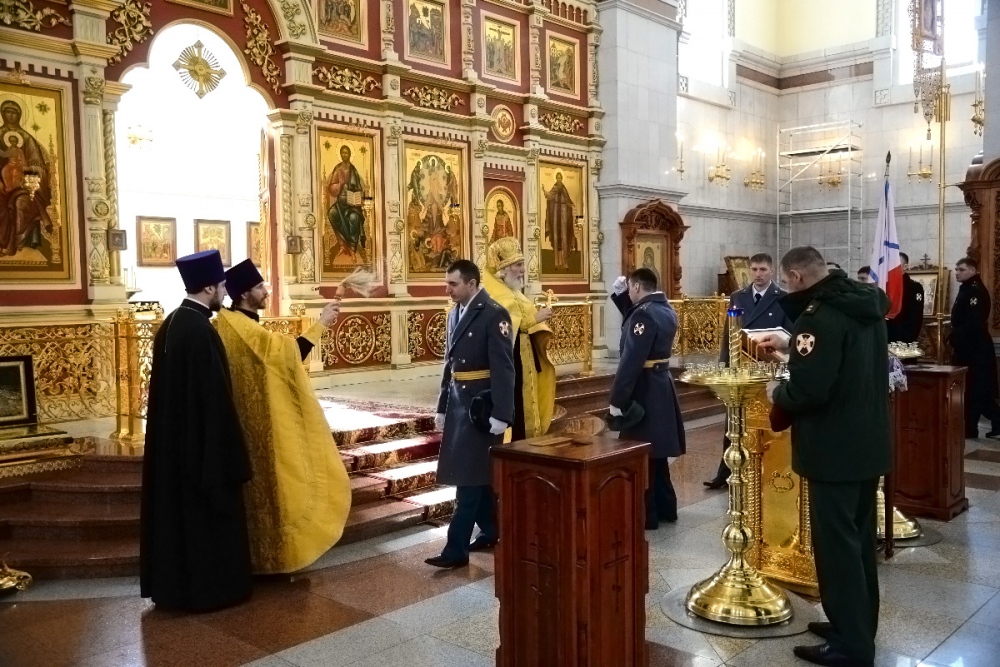 Молебен в честь Дня войск национальной гвардии в Спасо-Преображенском кафедральном соборе 27 марта 2018 г.