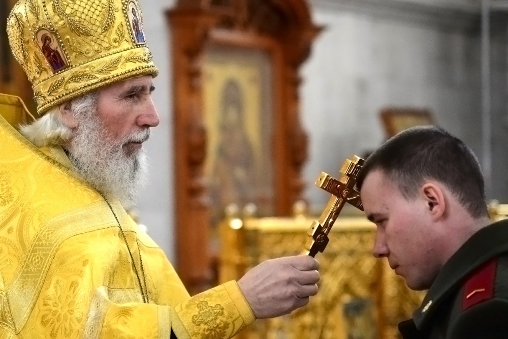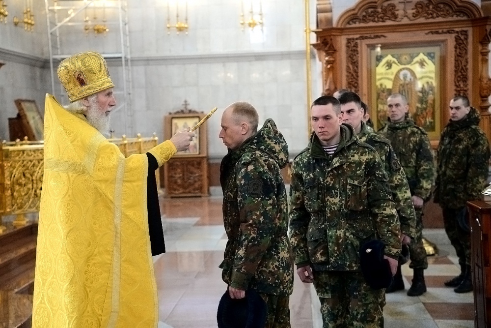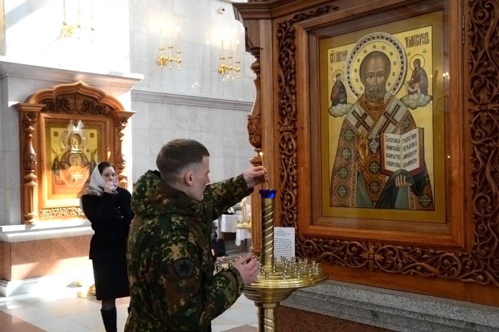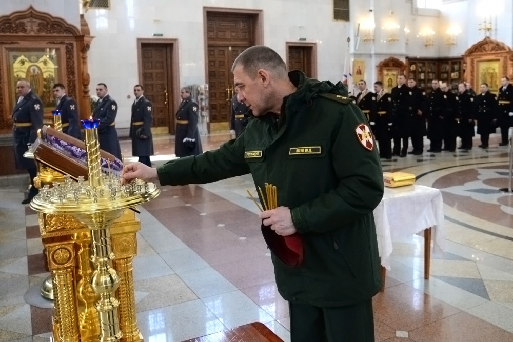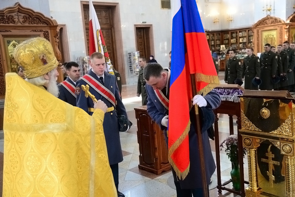 Молебен в честь Дня войск национальной гвардии в Спасо-Преображенском кафедральном соборе 27 марта 2018 г.