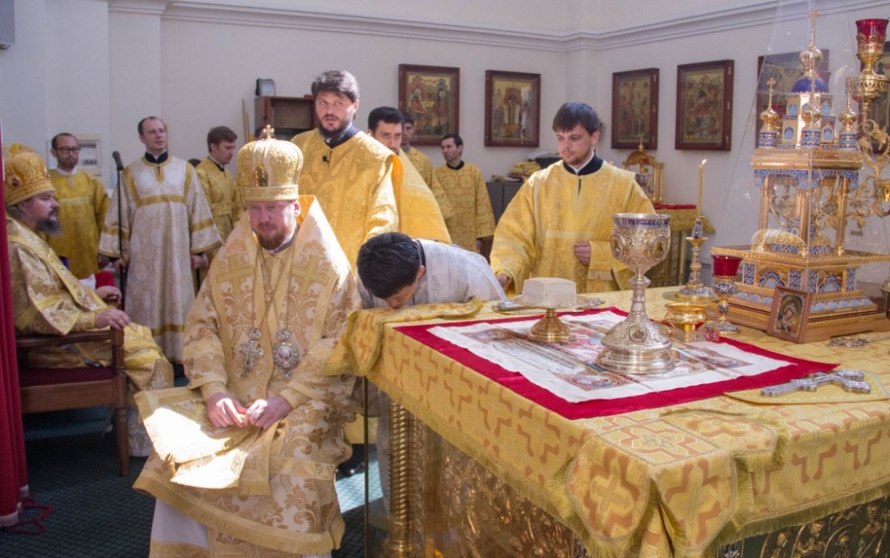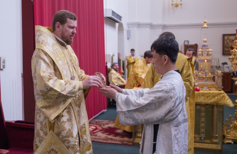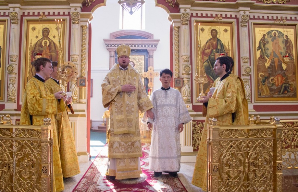 Митрополит Владимир совершил за Божественной литургией диаконскую хиротонию студента Хабаровской семинарии из Северной Кореи 29 июля 2018 года.