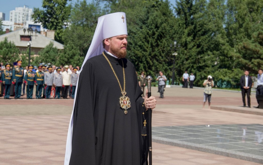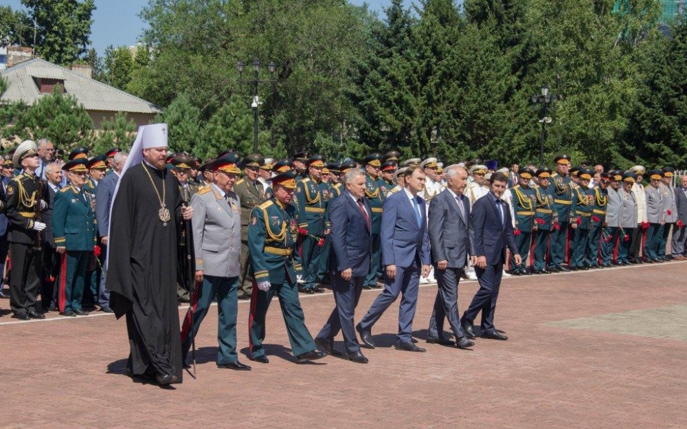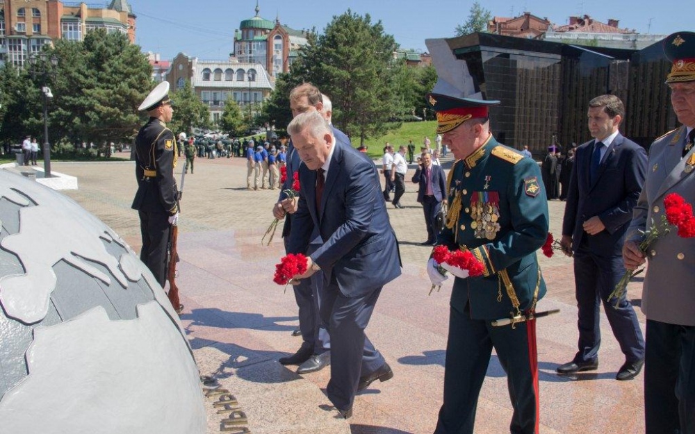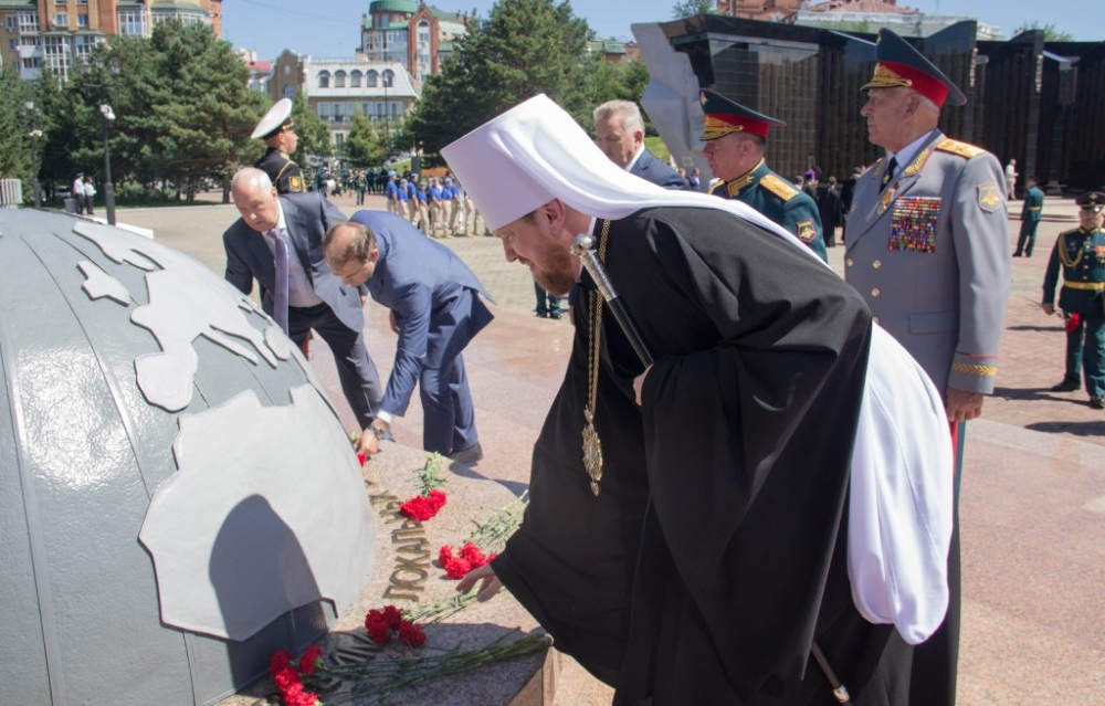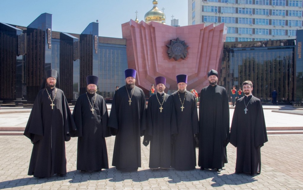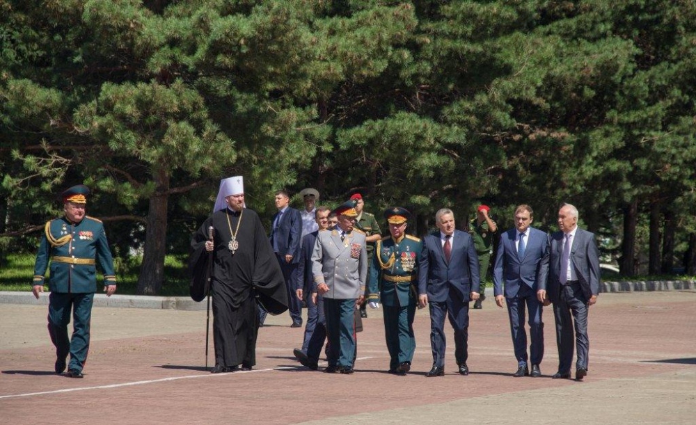 Священнослужители Хабаровской епархии приняли участие в возложении цветов к Вечному огню в память о воинах-дальневосточниках 4 августа 2018 г