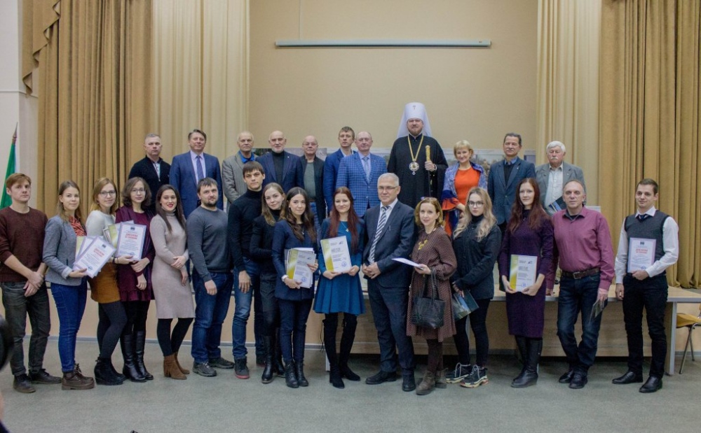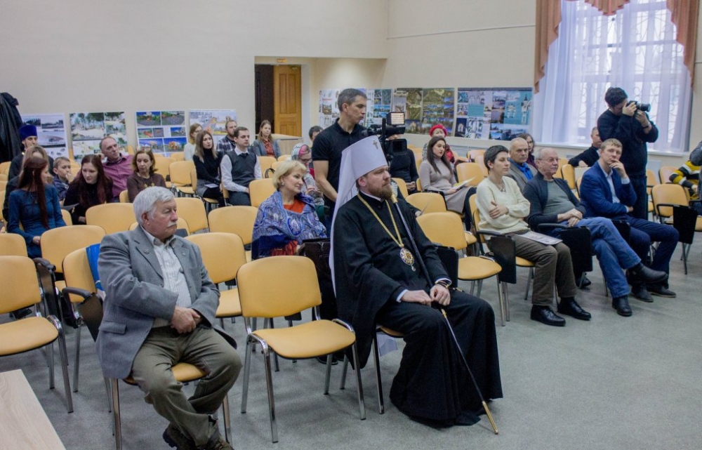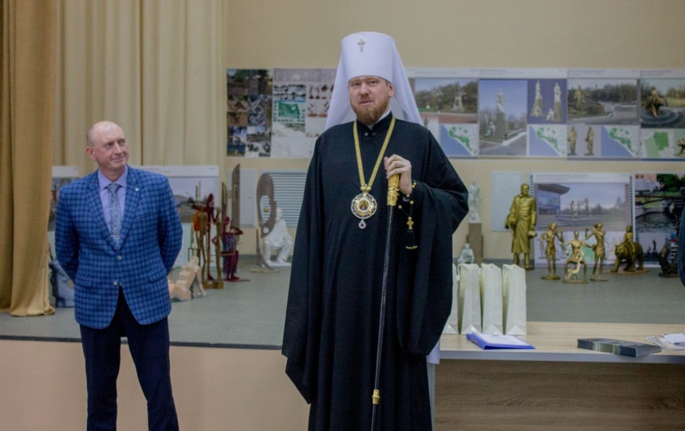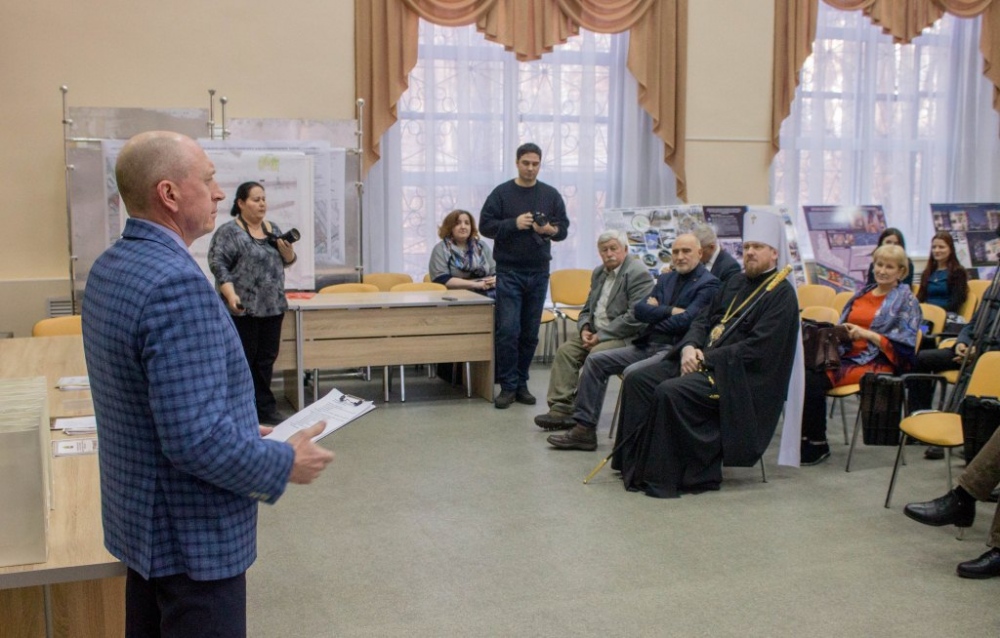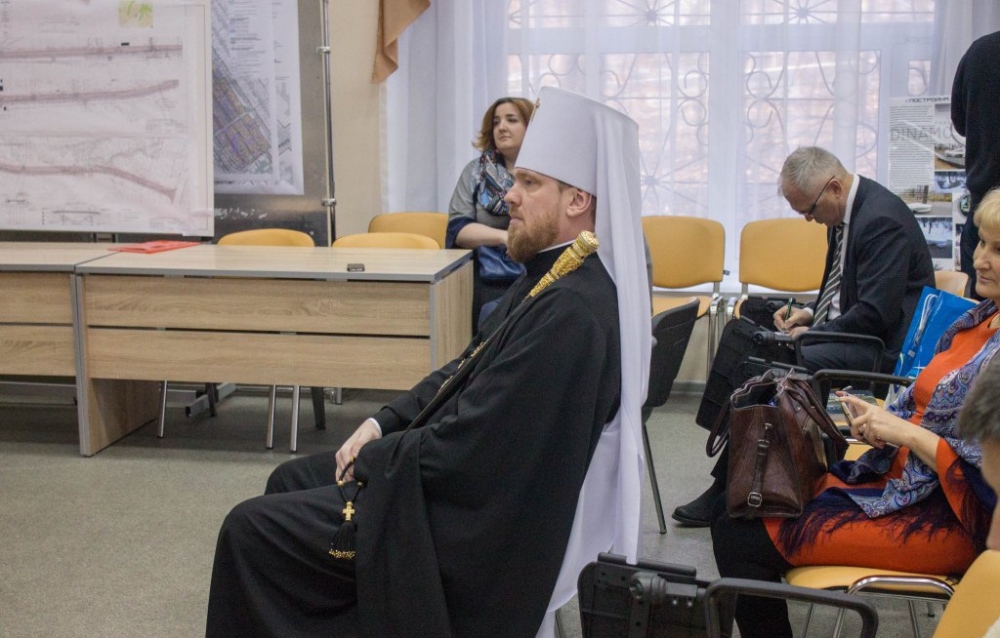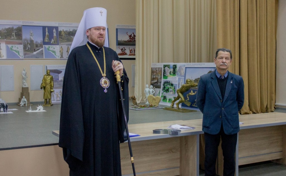 Митрополит Владимир вручил памятные подарки архитекторам, представившим проекты воссоздания Триумфальной арки 12 декабря 2018 г.