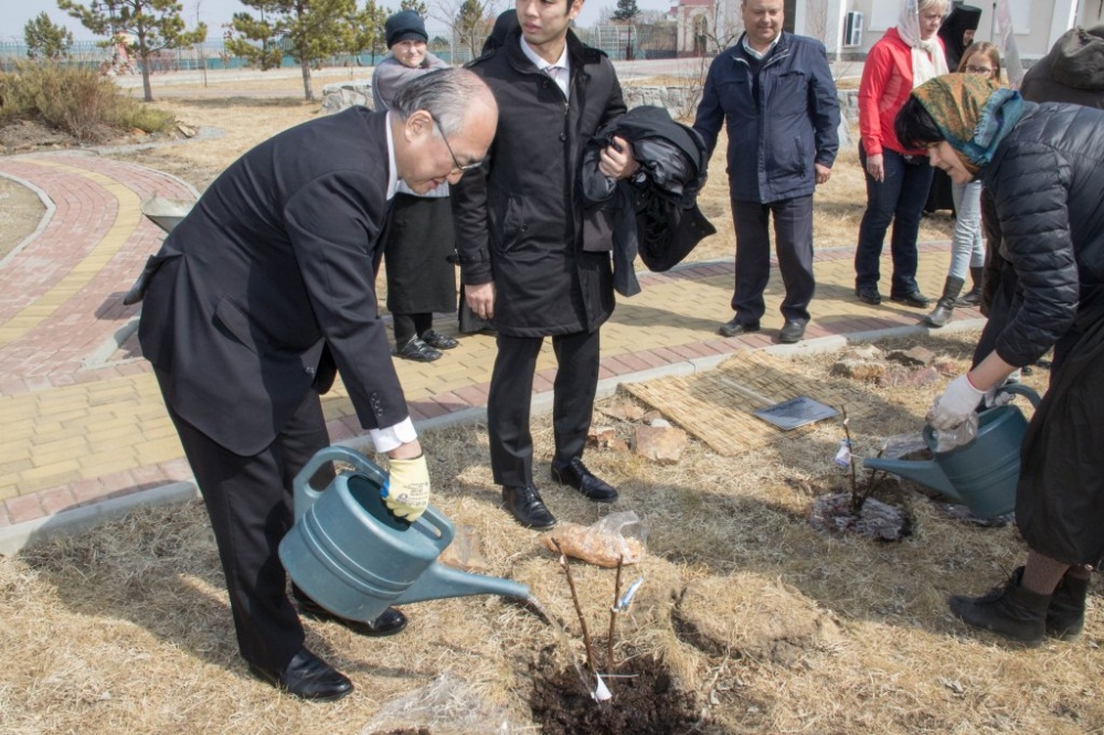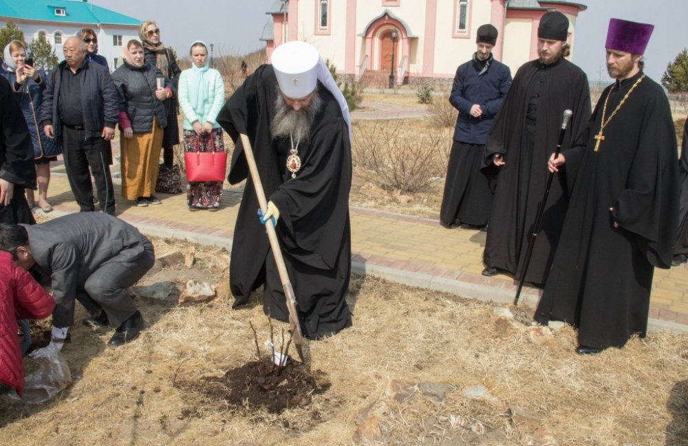 Высадка древовидных пионов на территории женского монастыря. 13 апреля 2019 г.