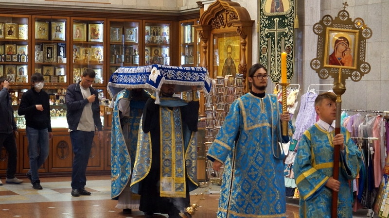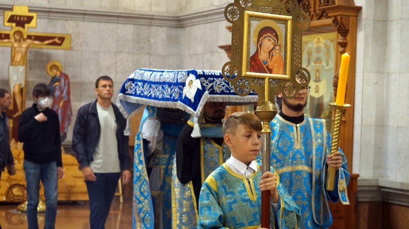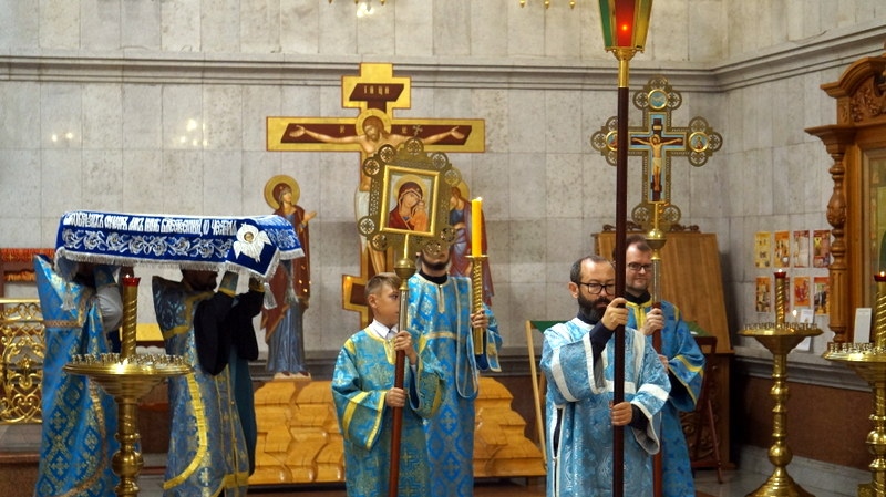 Утреня с Чином погребения Божией Матери в Спасо-Преображенском кафедральном соборе 30 августа 2020 г.