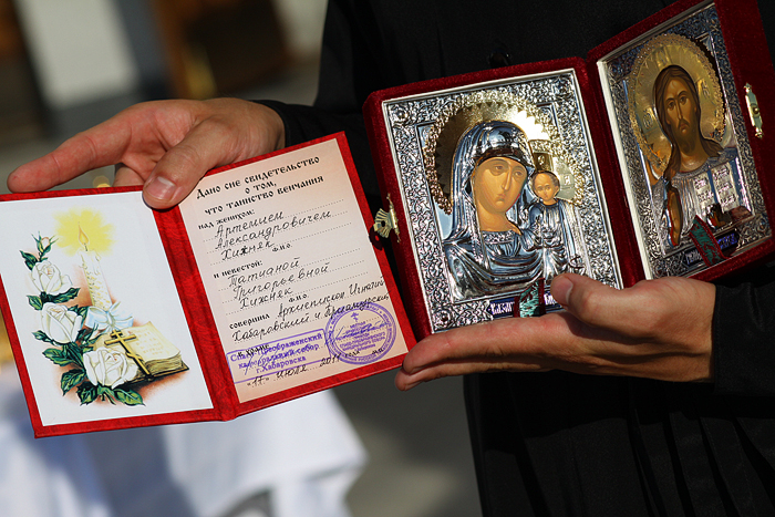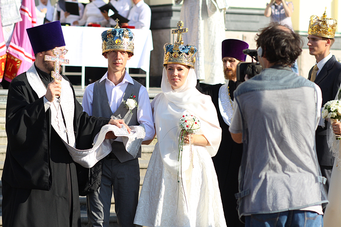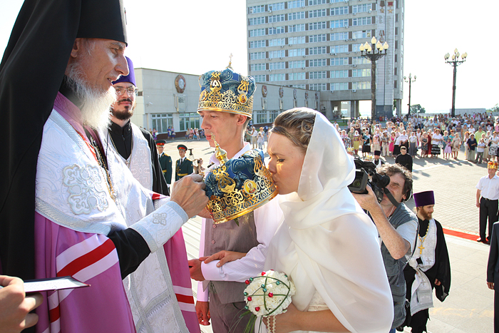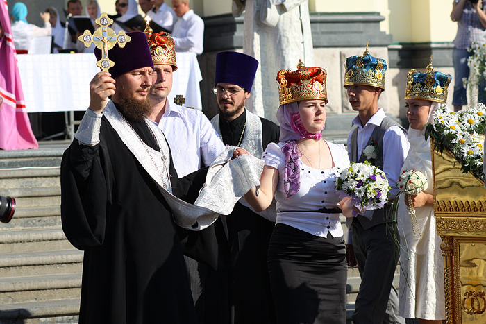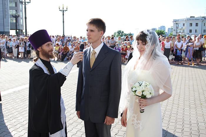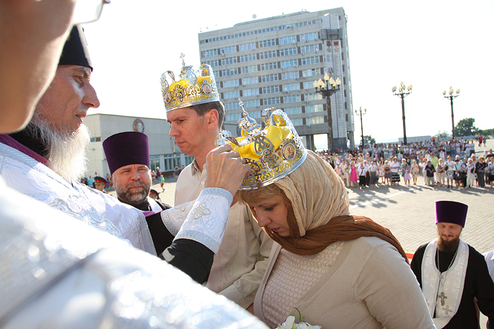 Праздник семьи, любви и верности в Хабаровске. Венчание супружеских пар архиепископом Хабаровским и Приамурским Игнатием. 17 июля 2011г.