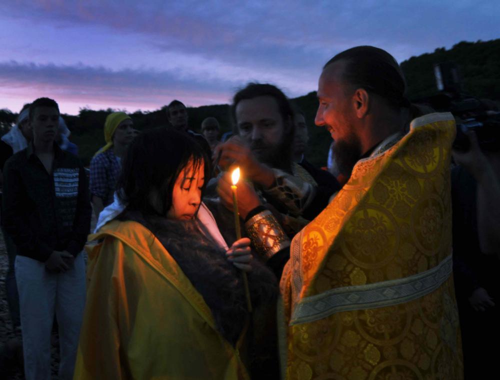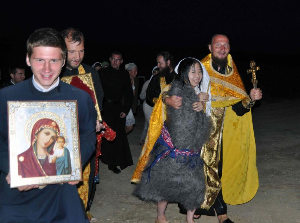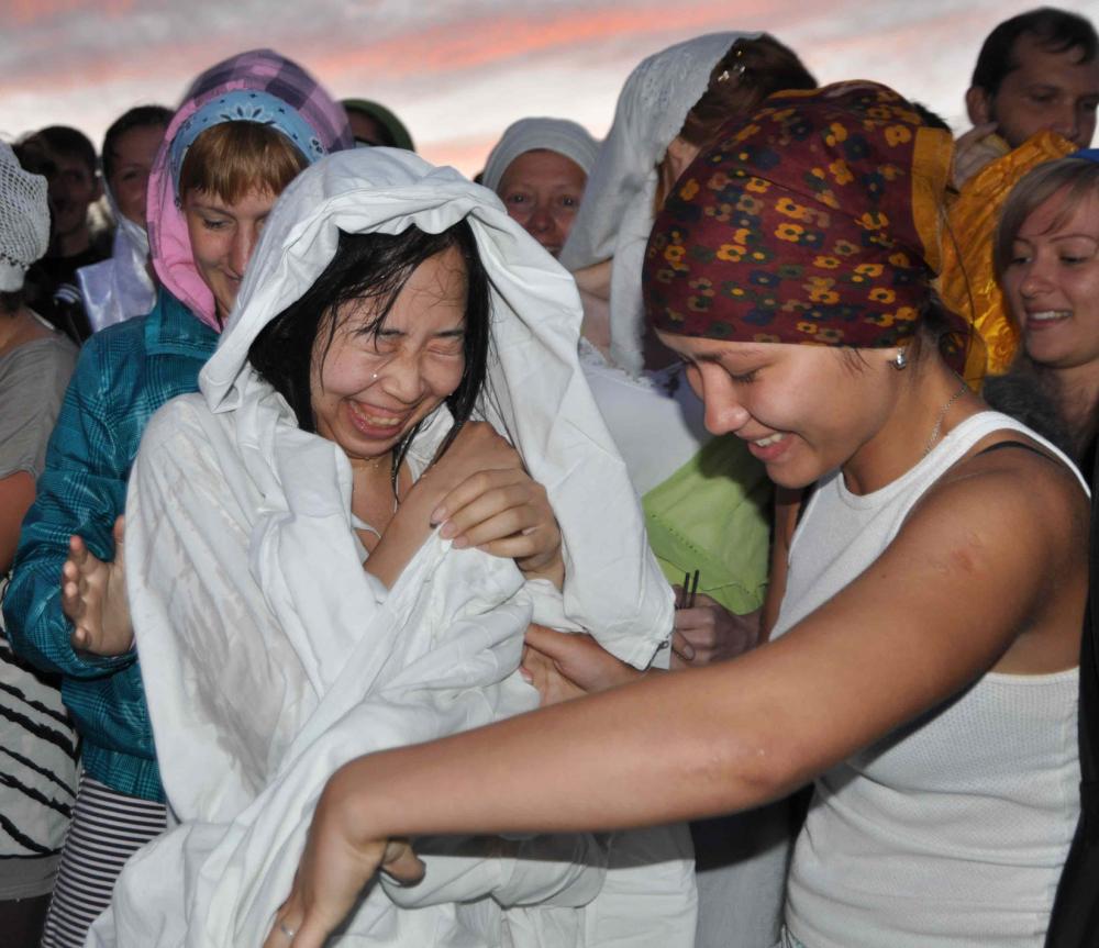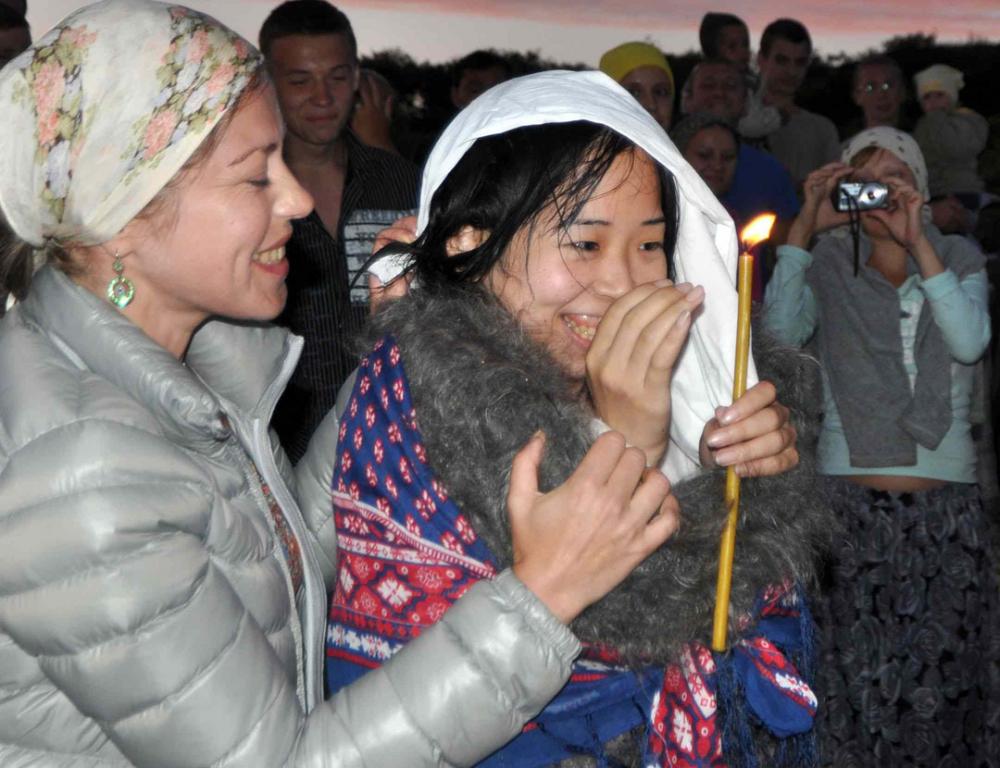 Крещение Сатоми Мидзогути в Японском море. Межепархиальный молодежный слет «Андреевский городок».